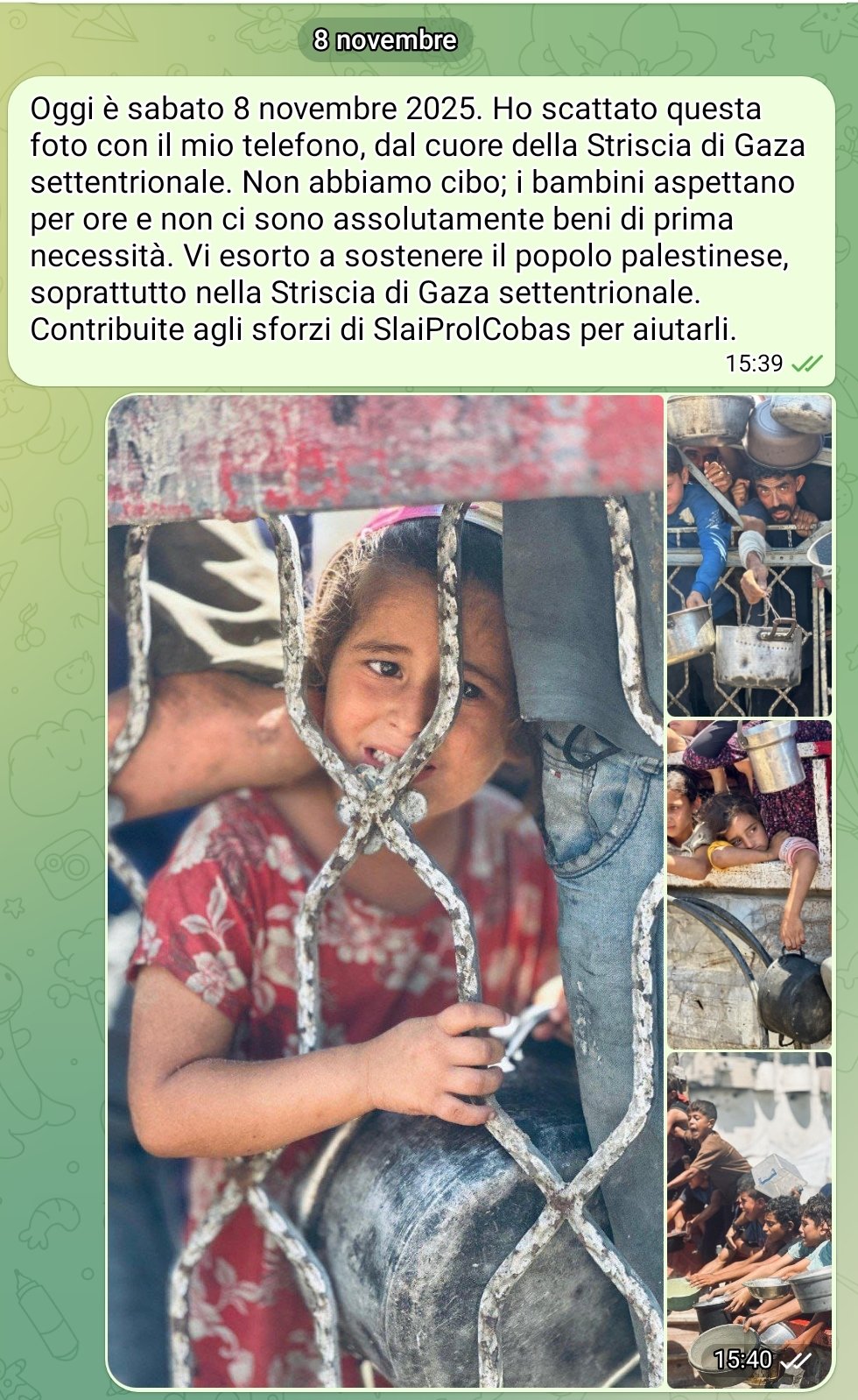 20 novembre 2025 . Continua il nostro sforzo di solidarietà ed aiuto contro la fame per una famiglia di Gaza che la cui casa è stata distrutta dai sionisti clicca qui
