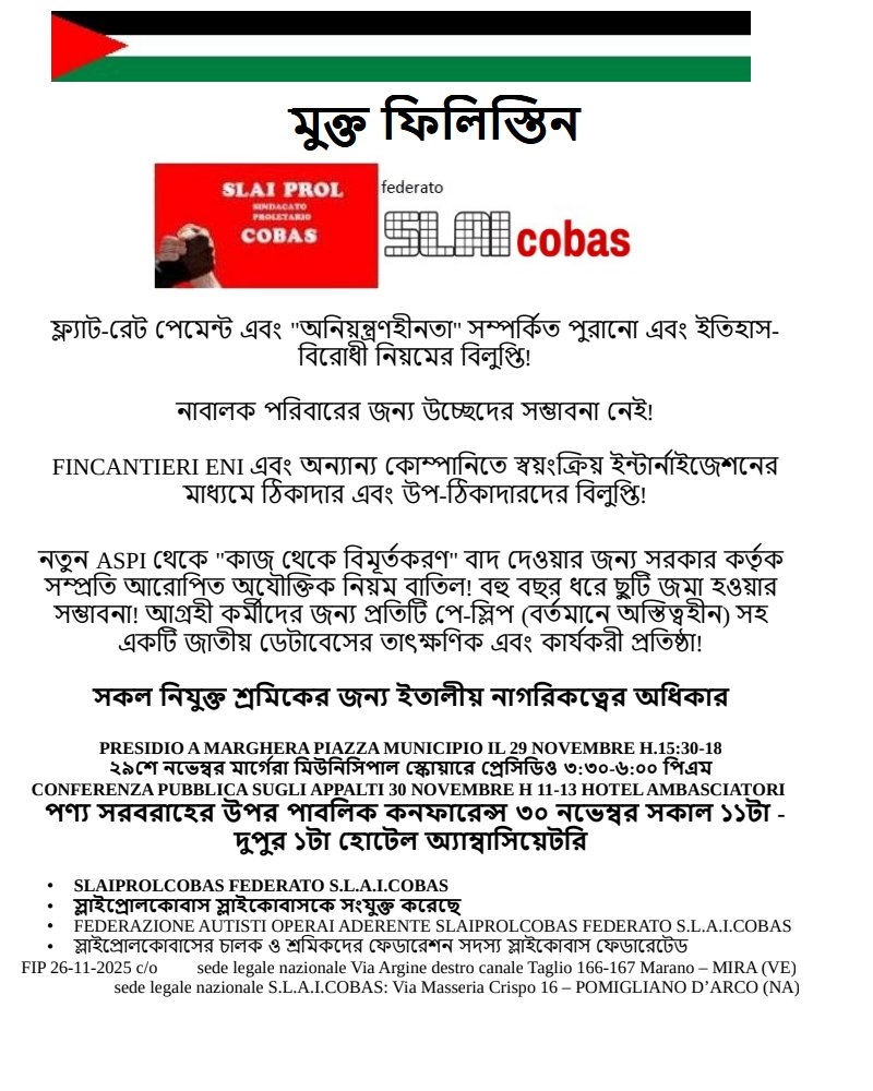 28-29 novembre 2025 volantino per lo sciopero generale e per la giornata internazionale per la Palestina clicca qui (pdf IT) clicca qui (jpg BDH) clicca qui (jpg IT)