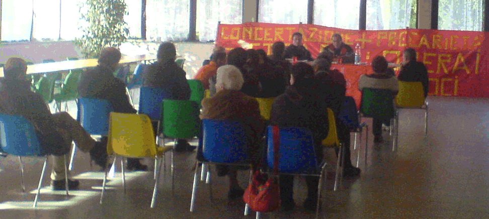 Nel pomeriggio a partire dalle 17 si è tenuta una assemblea per la costruzione del COMITATO DI BASE (COBAS) dei disoccupati ed immigrati, cui hanno partecipato circa 35 lavoratori e lavoratrici; una decina di immigrati iscritti al ns. sindacato, alcuni dei quali del Cobas appalti Fincantieri; una decina di immigrati simpatizzanti non iscritti; una decina di lavoratori in gran parte iscritti al ns. sindacato; alcuni altri lavoratori e lavoratrici immigrati-e che non conoscevamo. C'erano partecipanti oltre che italiani, di Marocco, Tunisia, Nigeria, Ruanda, Albania, Romania, Senegal. La riunione è stata unanime su tutti i temi, anche il contributo di una lavoratrice di Spinea, delle cooperative delle pulizie, è stato molto seguito ed utile. Da lunedì 5 (o 12 gennaio) partirà lo sportello per raccogliere i nominativi alla Lista di lotta, che sarà una lista per ogni etnia-nazione, di modo da evitare le discriminazioni su alcune etnie e nazionalità, nonché per stabilire e rafforzare le responsabilità all'interno del COBAS in costruzione. Si è parlato anche delle azioni di lotta, e di come arrivarci, soprattutto dell'importanza della adesione di massa al movimento. Si è partiti spiegando l'esperienza storica del movimento di lotta dei disoccupati di Napoli, che oggi tutta l'Italia è come Napoli, e che altro che 3% di disoccupazione nel Nord-Est, siamo certamente sopra il 10%. Durante la assemblea sono stati portati ad esempio della criminalità padronale il caso della Sirma, e di molti lavoratori immigrati, come i casi di Mohammed, che vive a Mira, operaio edile ed agricolo cui è stata negata la disoccupazione perché "non iscritto al registro lavoratori agricoli", da anni vittima dello sfruttamento e dell'insicurezza contrattuale, sotto sfratto per morosità e senza lavoro con 3 figli e moglie a carico; di Mustafà, licenziato dalla Hub e senza indennità di disoccupazione, ora in causa con i suoi vecchi padroni "soci di cooperativa", che non pagavano i contributi; di Patricia, operaia di "cooperativa" che produce alimentari, e che non riconosce 13a e ferie; di molti lavoratori tunisini della Fincantieri, che sono stati per un anno assunti a tempo indeterminato e senza alcun lavoro; di Anwar, che per aiutare altri lavoratori di un appalto alla Fincantieri dove lavora da 10 anni, ora rischia il licenziamento con il ricorso ad una raffica di contestazioni disciplinari; di Faith, il cui padrone aveva due calzaturifici nella stessa strada, e ricorreva alla manodopera di quello poi chiuso, nella azienda più grossa, e che ha chiuso quella più piccola a settembre con l'aiuto di un sindacato confederale che ha costretto 11 suoi compagni di lavoro, mentre lei era in maternità, a firmare le dimissioni; Faith ora è in causa per la riassunzione; di Viorel, che è stato licenziato appena ha avuto un infortunio in un appalto dentro la Nuova Pansac; di Alì, che sta aspettando da 4 mesi una risposta da parte della base americana di Vicenza, dove si è infortunato mentre lavorava, unico della sua azienda, in un appalto di manutenzione, con una scheggia all'occhio destro; si è parlato anche delle cooperative e dei mille trucchetti e falsità che operano di concerto alle interinali. E' intervenuta anche una giornalista immigrata militante che si è dichiarata disponibile a collaborare al ns. lavoro. I partecipanti all'assemblea, con poche eccezioni, si sono tutti allontanati in maniera ordinata verso le 18,30-19.