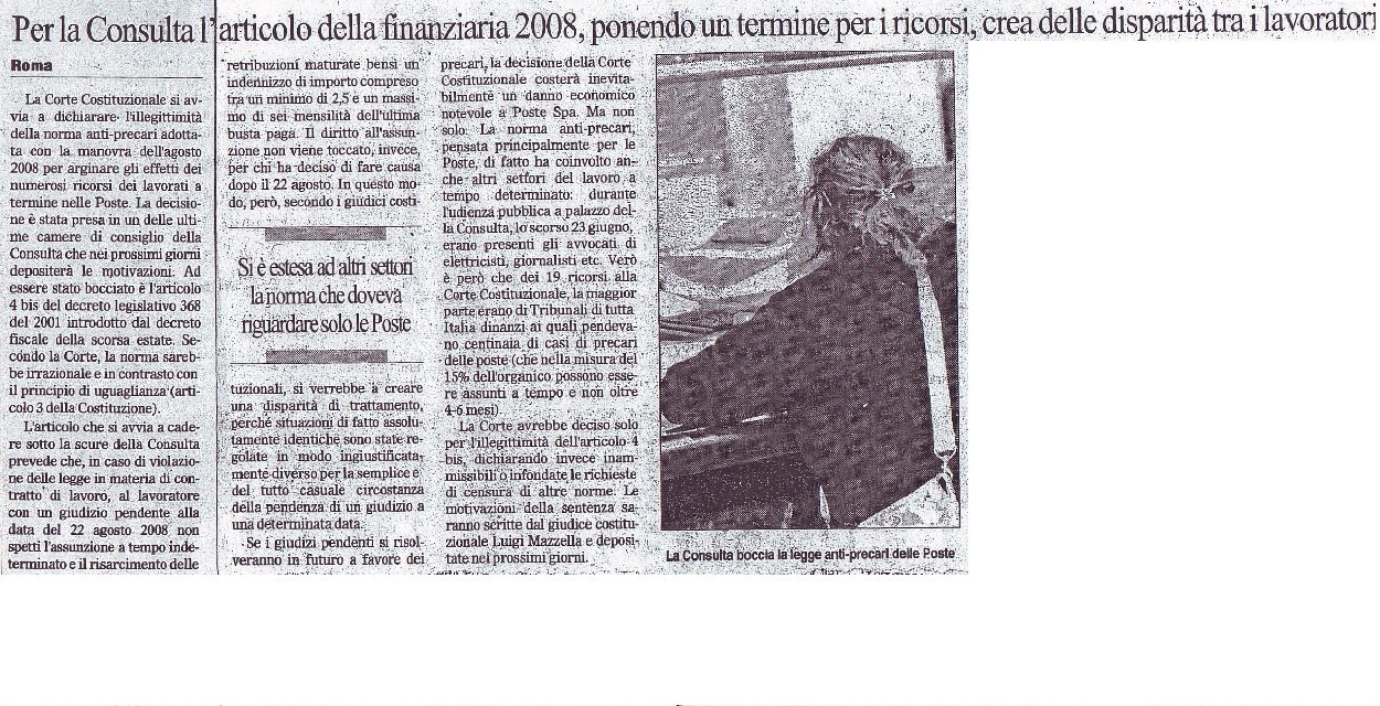 nord-est" dubbi di magistrati sull'infamia della precarietà nella legge Finanziaris 2008 (caso Poste italiane)