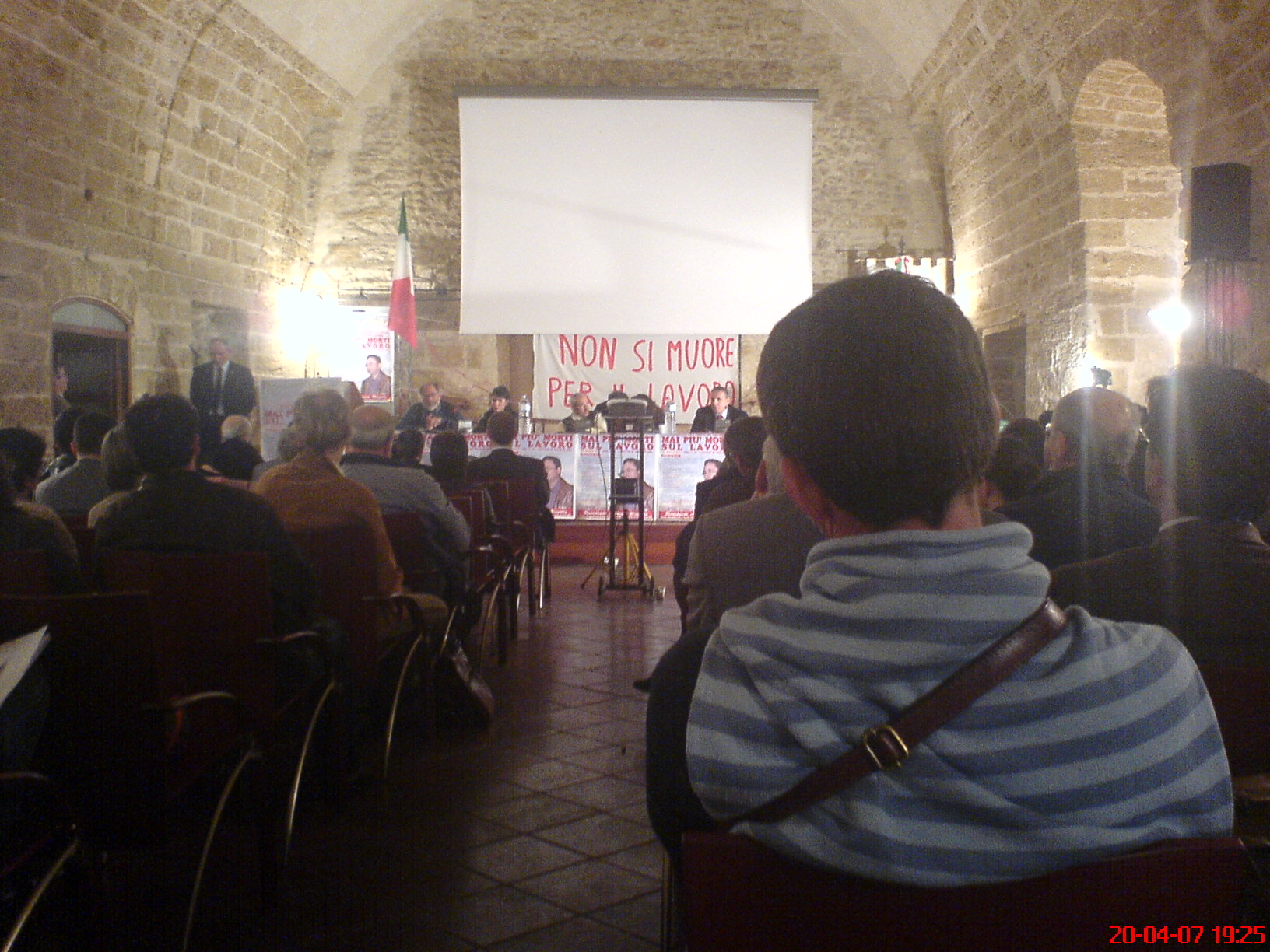 maggio 2007 convegno di Mesagne con Ernesto di SLAI COBAS Taranto in presidenza (BR) http://www.slaicobasmarghera.org/sezfoto/DSC00665.jpg