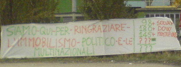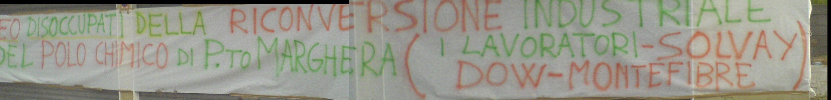 novembre 2007 - striscioni dal presidio permanente operai Solvay di fronte Capannone del Petrolchimico di Marghera http://www.slaicobasmarghera.org/sezfoto/SOLVAY/Immagine2.jpg