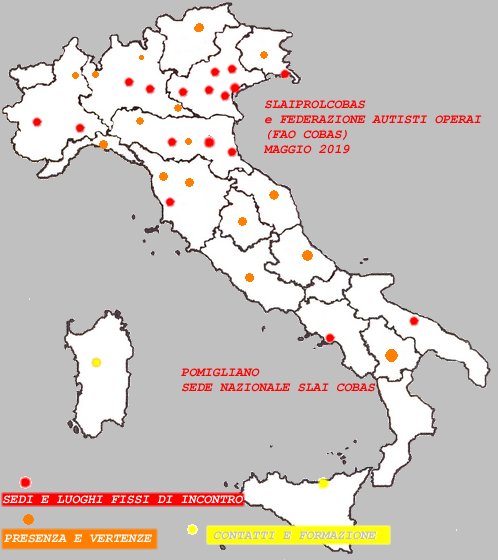 70 PROVINCE ED IN 18 REGIONI ITALIANE, SLAIPROLCOBAS dal 2015 SINDACATO
