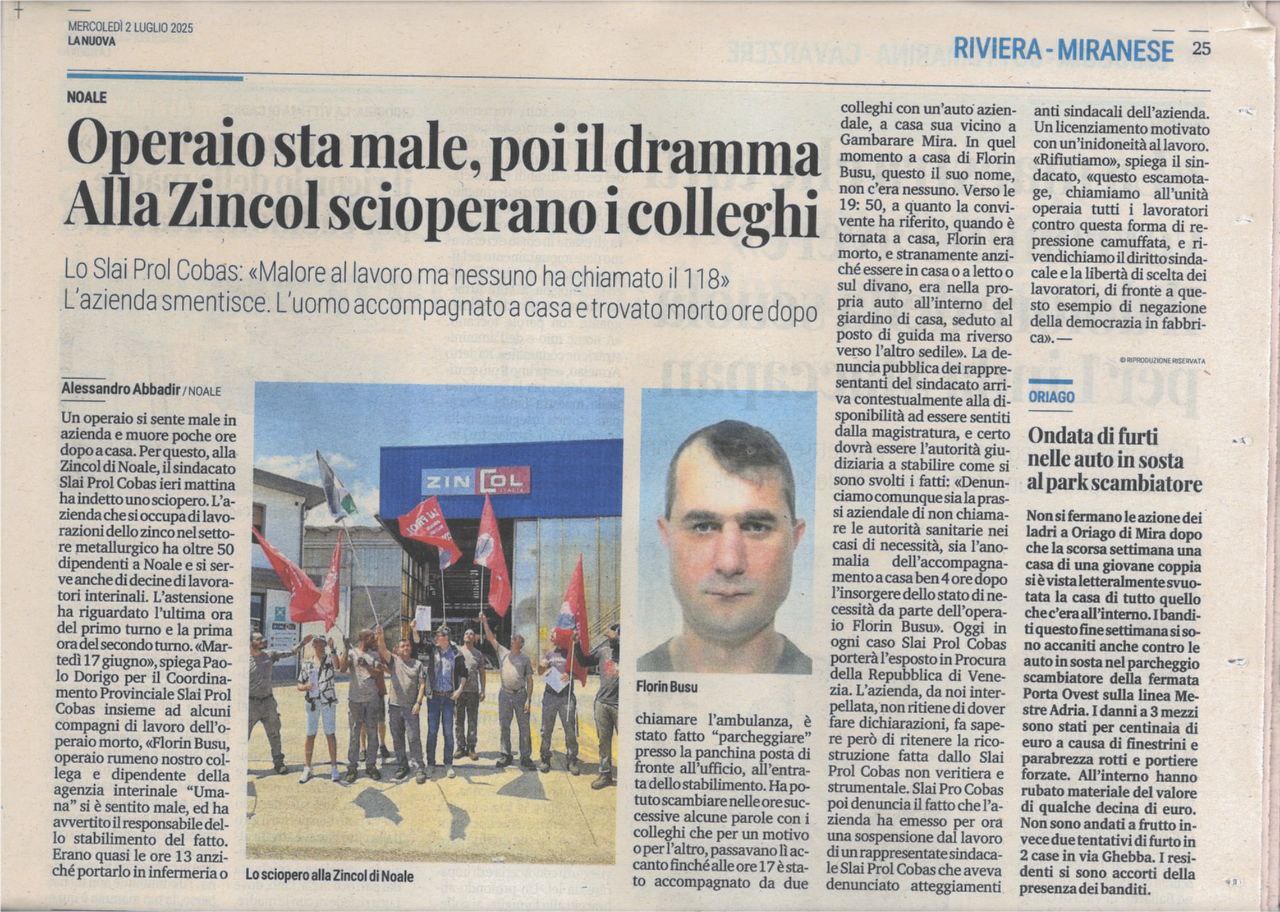 30 novembre 2025 Fiorital spa Venezia - Continua lo sciopero del lavoro domenicale introdotto arbitrariamente dall'Azienda senza alcun confronto sindacale. In questa Azienda siamo operativi prima ancora della nascita di SlaiProlCobas. clicca qui