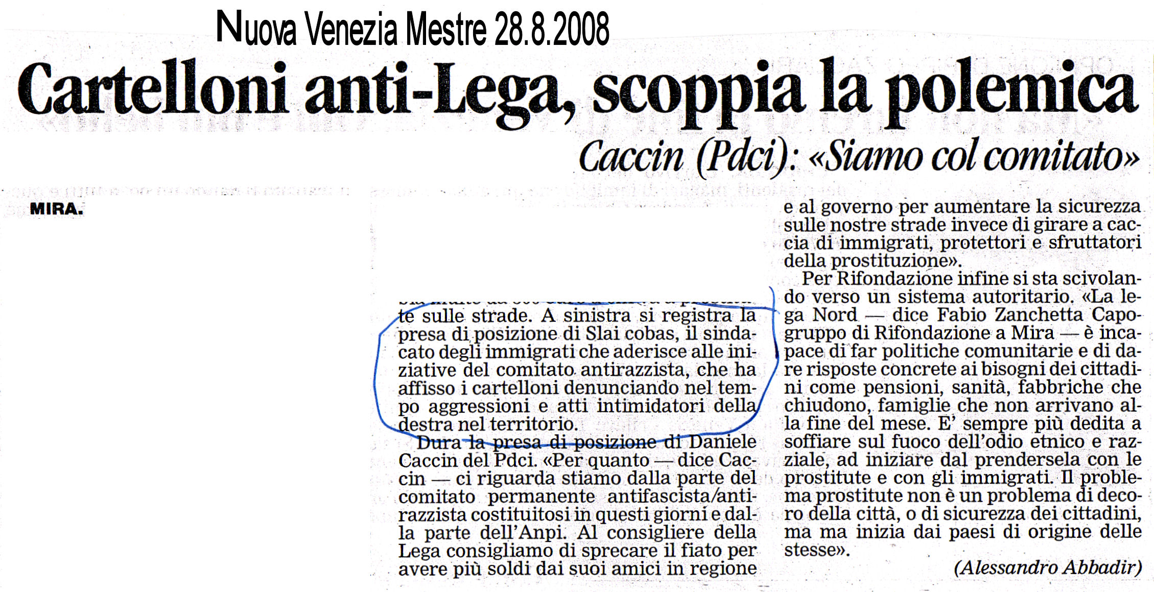 noi preso alcuna iniziativa del Comitato permanente antifascista antirazzista,