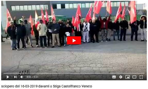 07-02-2019 – STIGA (ex GGP) CASTELFRANCO E CAMPIGO – Rottura tra confederali ed azienda. Lo sciopero dei lavoratori di SLAIPROLCOBAS dei sabati di flessibilità che continua da novembre 2018, si estende ora alle organizzazioni confederali che lo hanno proclamato per 3 sabati consecutivi. Il volantino del Cobas http://www.slaicobasmarghera.org/ volantino07022019-stiga.pdf