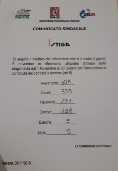 08/03/2023 Castelfranco (TV) Proclamato sciopero per la Stiga spa per la giornata di flessibilità di sabato 11-03-2023 - clicca qui