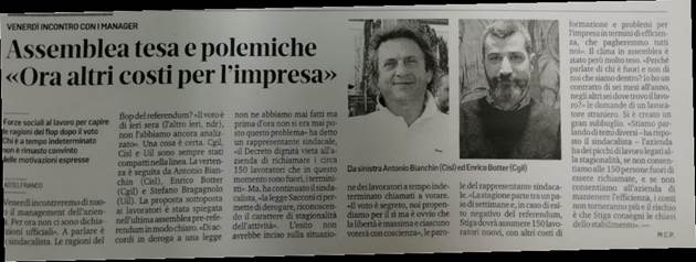 mesi insieme a Bianchin Cisl-Fit e alla Uilm), hanno svolto una assemblea molto partecipata. Dopo